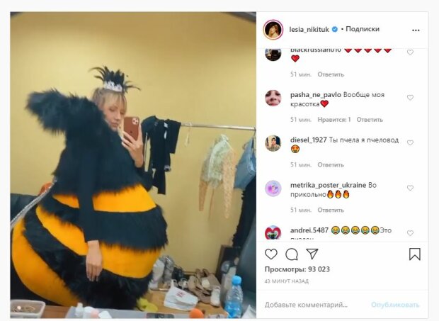 На фото Леся позирует в костюме пчелы с пушистым верхом. Костюм был очень большим и телеведущая благодаря нему стала в раза два больше. Образ красотка дополнила короной, а волосы собрала в хвост. Звезда отметила, что это ее образ на текущий день. Об этом пишет Politeka.net со ссылкой на страничку знаменитости.